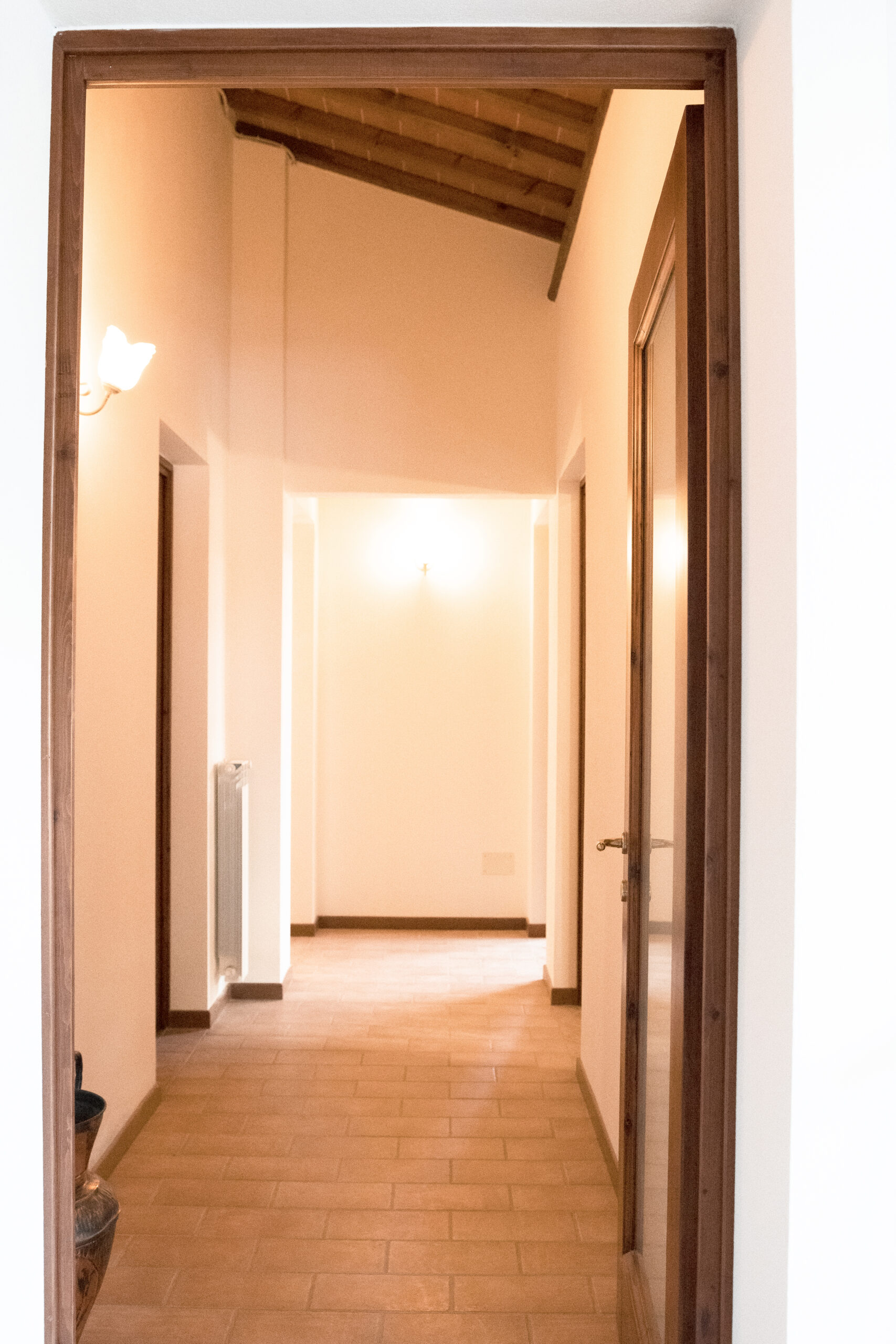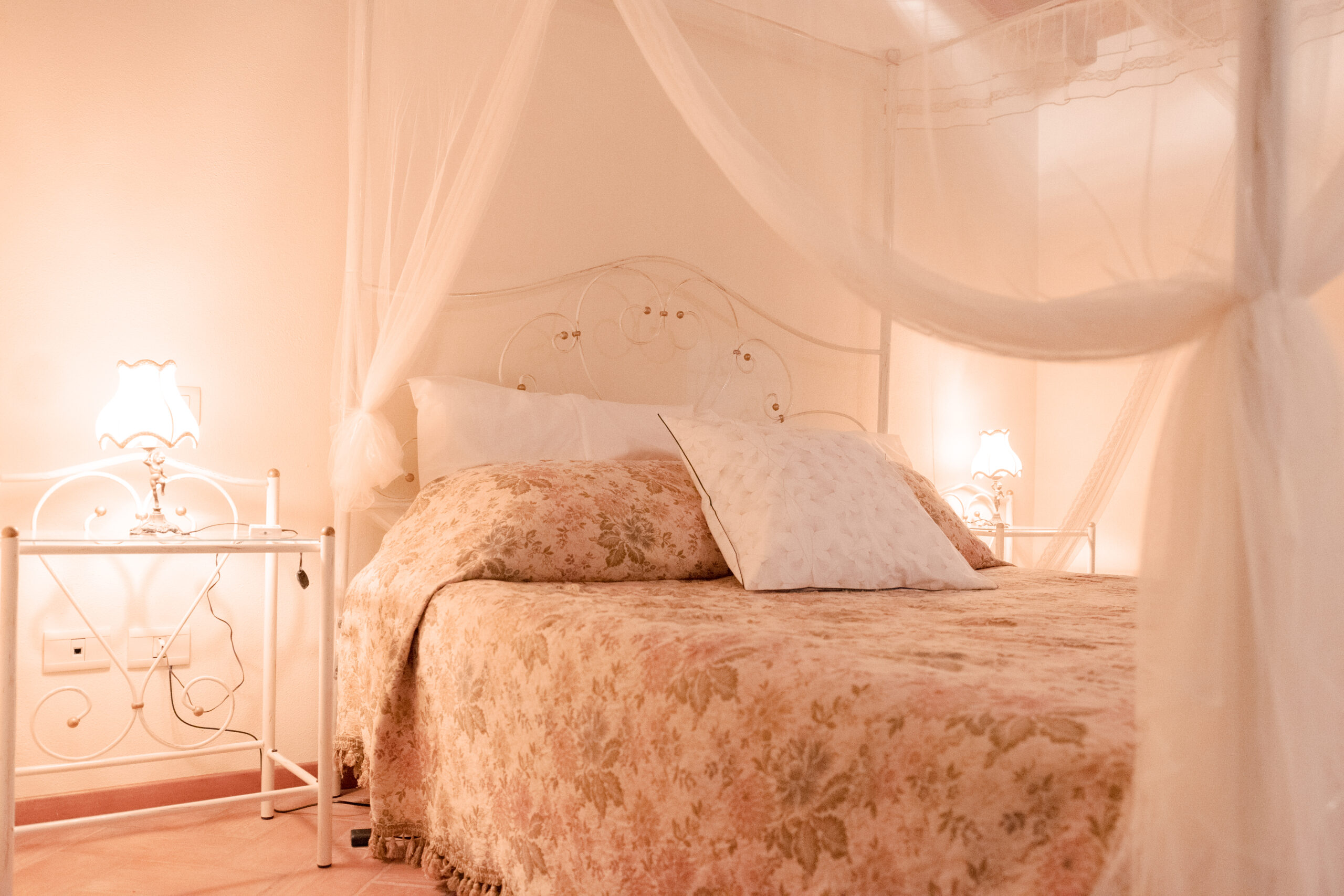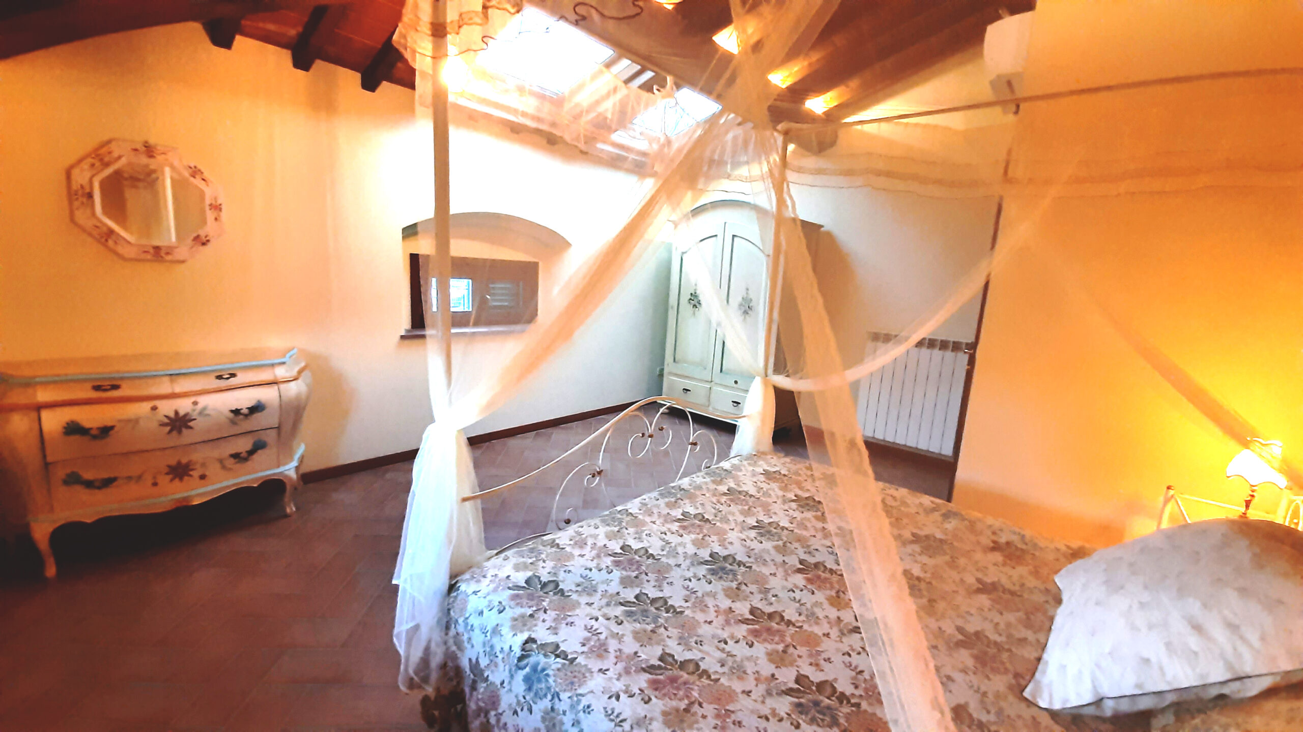 Si accede alla zona notte tramite un corridoio, dove a destra troviamo una camera doppia con armadio e una camera matrimoniale con armadio e letto a baldacchino.