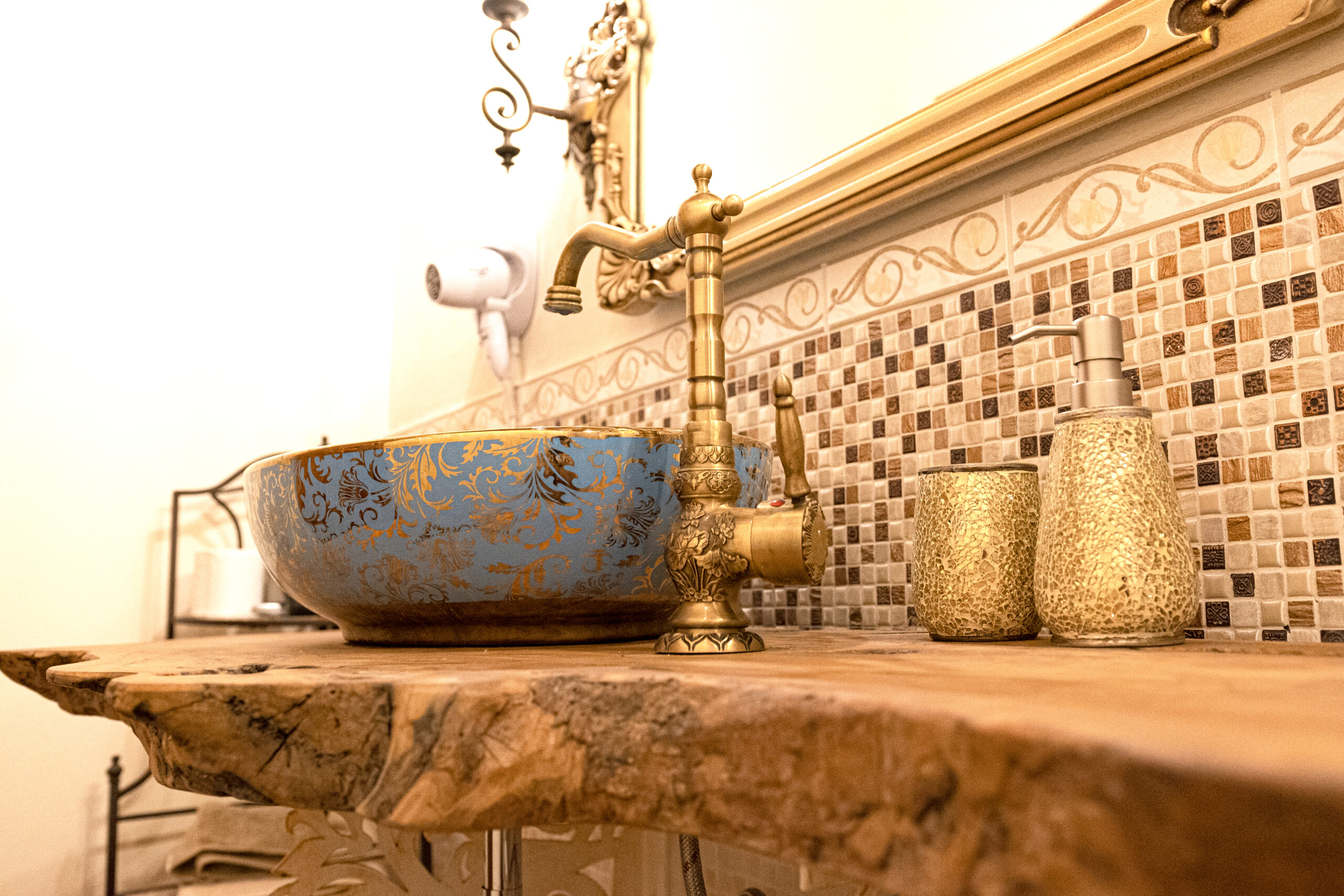 On the left instead we have a closet with a sink and space to leave the suitcases, and finally the bathroom with shower cabin, hairdryer, and service linen.